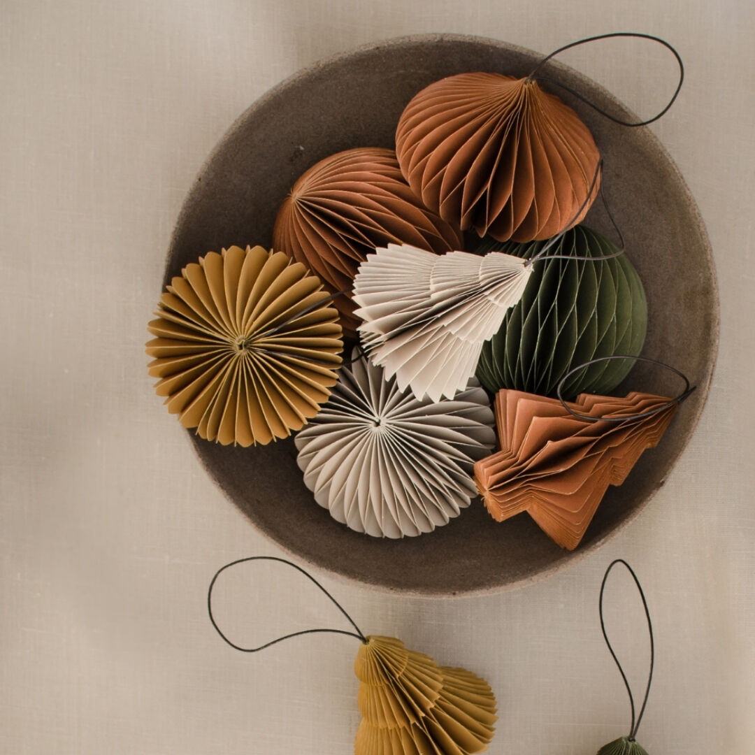 Our handcrafted paper ornaments are back in new seasonal colours. Use the ornaments to decorate your Christmas tree, seasonal branches or your Christmas table. Choose your favourites from a variety of colours and shapes, and mix and match to get the perfect palette for your magical Christmas. After the festivities, the enclosed magnet enables you to fold and store the ornaments away neatly.