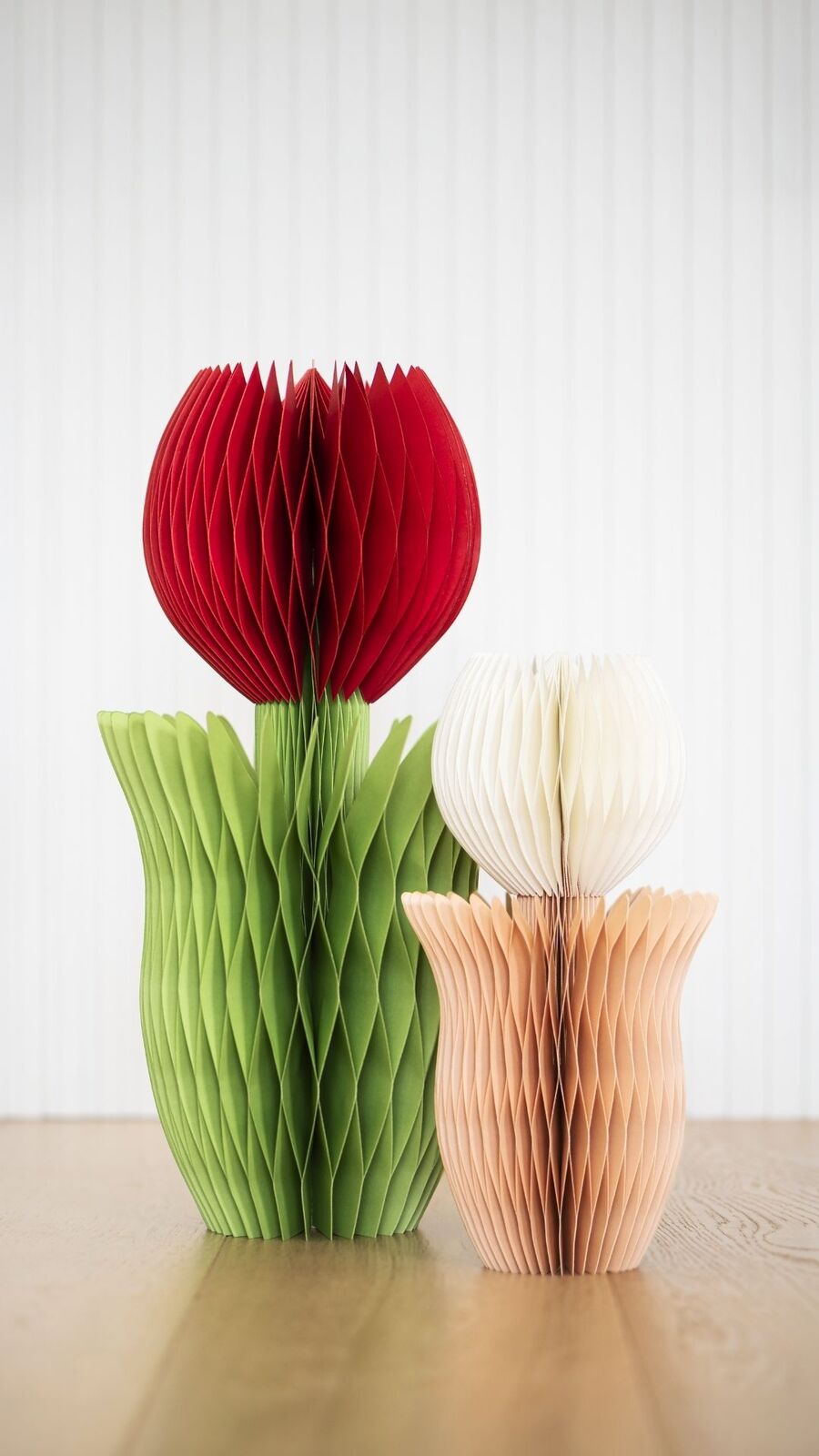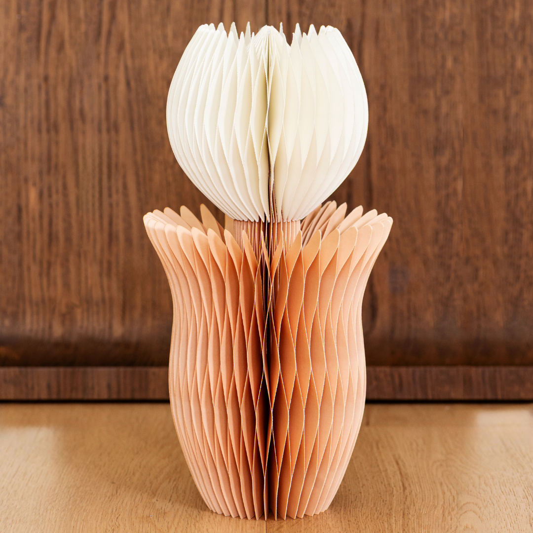Our Tulip decor is crafted from sustainable paper and comes flat packed with a magnetic closing function.