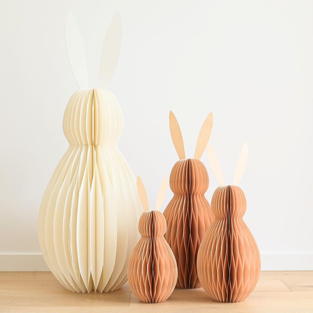 Elevate your Easter décor with our paper bunnies, crafted from sustainable paper in refined, earthy hues. Designed to be displayed alone or styled together, they offer a modern, understated statement for your home.