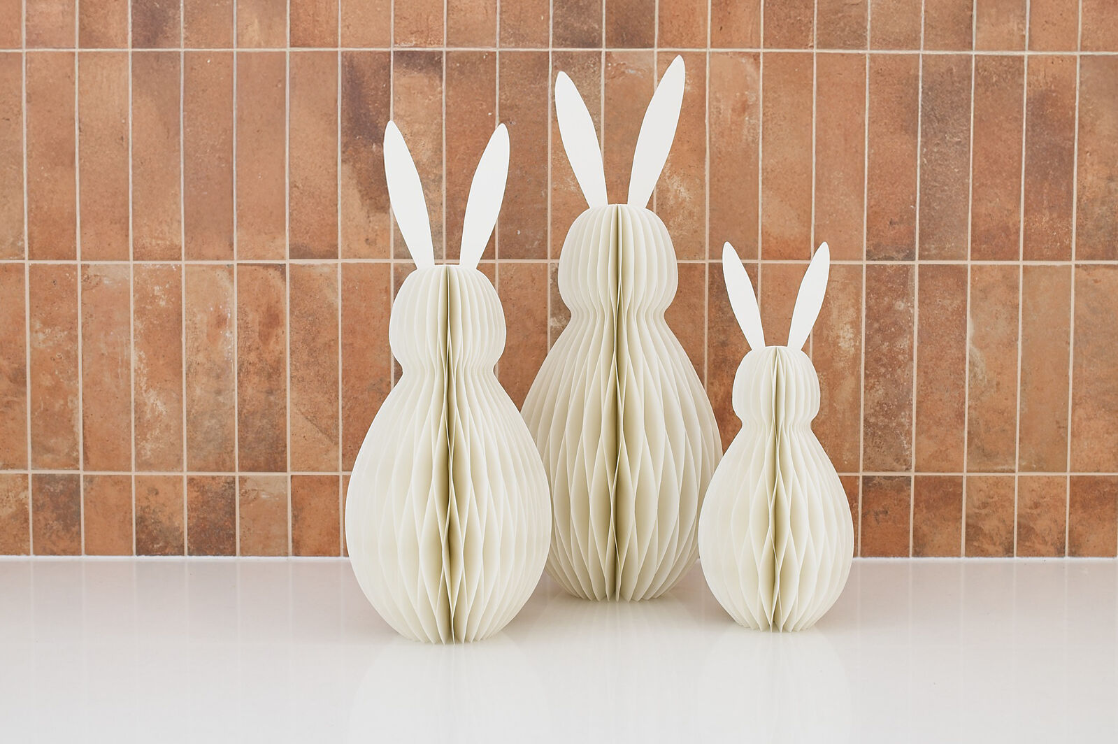 Elevate your Easter décor with our paper bunnies, crafted from sustainable paper in refined, earthy hues. Designed to be displayed alone or styled together, they offer a modern, understated statement for your home.